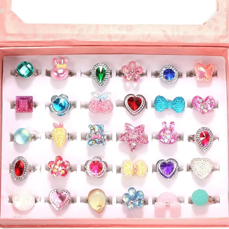 تصميم فريد - تتضمن هذه المجموعة 30 نمطًا مختلفًا من خواتم الأحجار الكريمة المقلدة، والتي ستأسر طفلك بالتأكيد. هذه الخواتم مصنوعة من مادة الأكريليك الشفافة وهي مبهرة. مصممة بشكل فريد كما هو موضح.