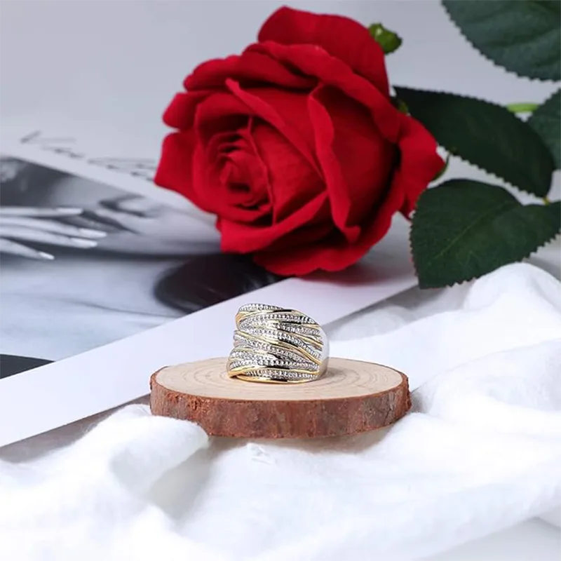 تصميم عصري متشابك متعدد الطبقات: يتميز هذا الخاتم النسائي المصنوع من خليط معدني بتصميم متشابك، مما يوفر تأثيرًا غنيًا ثلاثي الأبعاد. شكله الواسع يتوافق مع موضة الموضة وهو مناسب جدًا كخاتم كوكتيل أو خاتم إبهام، مثالي لأولئك الذين يبحثون عن أنماط جريئة.