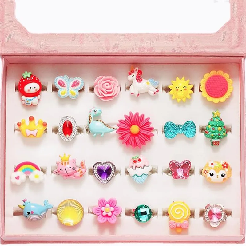 【مجموعة خواتم أطفال متينة للعبة البنات】مصنوعة من سبائك ومعدن عالي الجودة، بدون نيكل، صديقة للبشرة، آمنة وسهلة الصيانة، حلقة أطفال لطيفة وجميلة هي مجموعة مجوهرات لتلبيس الأميرة وألعاب المحاكاة. إنها مجموعة إكسسوارات مثالية للأطفال وهي لعبة ممتازة للفتيات من سن 3 إلى 8 سنوات.