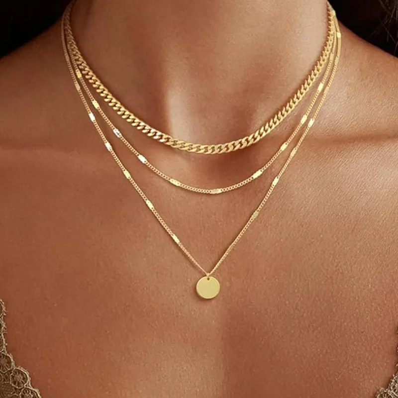تحتوي قلادة الموضة النسائية المطلية بالذهب على ثلاثة تصاميم مختلفة للقلائد وهي السلسلة الكوبية والسلسلة المدببة وسلسلة العملات المعدنية، والتي يمكن ارتداؤها بشكل منفصل أو مكدسة. السلسلة الكوبية القصيرة مقاس 13.8 بوصة (عرض 5 مم) قديمة ورائعة، وسلسلة القلادة المدببة المتوسطة مقاس 15 بوصة بسيطة وأنيقة، وسلسلة العملات الطويلة مقاس 17 بوصة متعددة الاستخدامات وأنيقة. تكمل الأنماط الثلاثة بعضها البعض، مما يخلق إحساسًا قويًا بالطبقات عند تكديسها، ولكل منها سحره الخاص عند ارتدائه بمفرده.