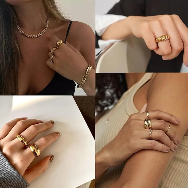 خواتم السيدات المقاومة لتغير الألوان: حلقاتنا ذات الطبقات مصنوعة من النحاس. السطح مطلي بالذهب الحقيقي عيار 18 قيراط، خالي من النيكل والرصاص، مع عدم وجود خطر الحساسية، ذو جودة عالية، مع الاهتمام بالتصميم التفصيلي. خواتم الموضة النسائية المطلية بالذهب الحقيقي مناسبة للارتداء اليومي.